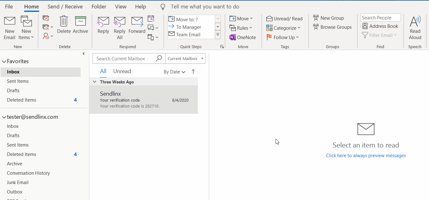 3. Activate the Sendlinx account in Outlook > Sendlinx > Activate.